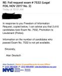 I asked exactly what you just did how many scantron draw scored a 70 or more. Just got a response a few minutes ago that "candidate score information is not yet available."
